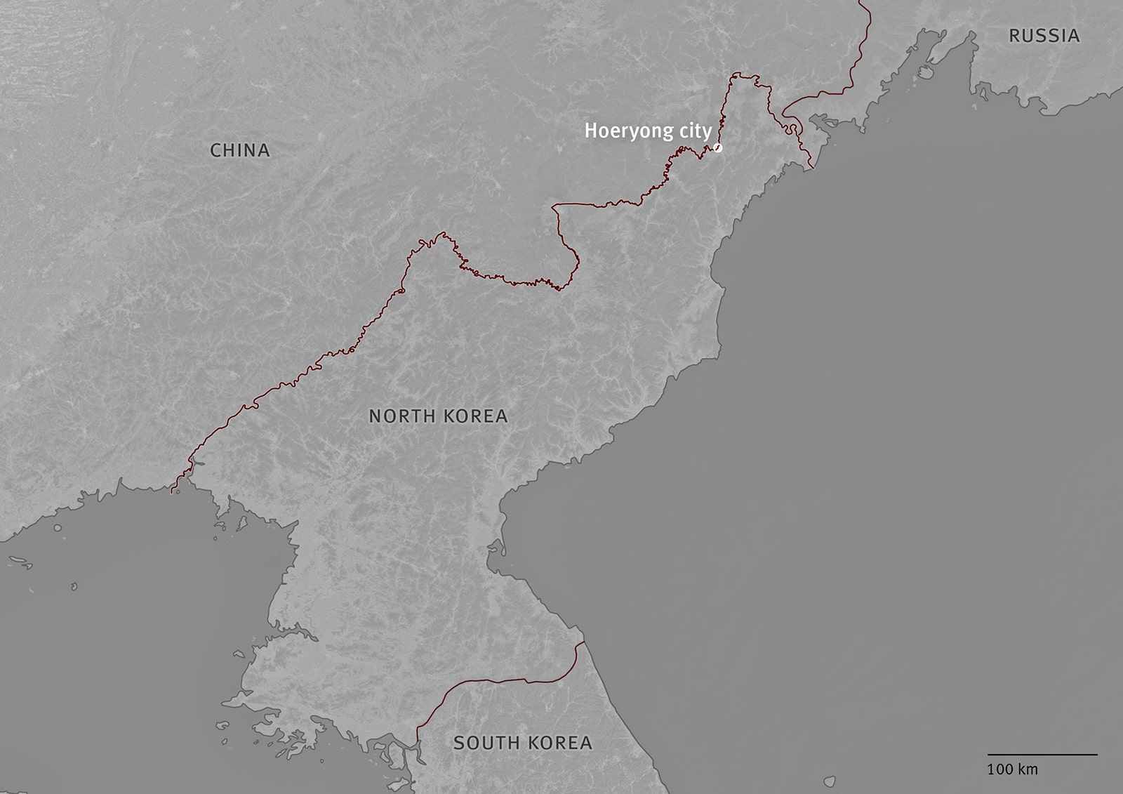Five of the areas are located along the border with China and one along the border with China and Russia. (In November 2022, Human Rights Watch published the findings of one of the six areas, covering 7.4 kilometers around Hoeryong city, North Hamgyong province.)